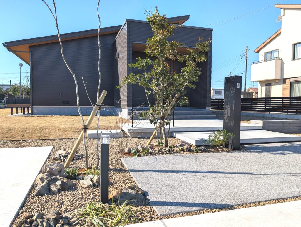 建物と外構が一体となった、カッコいい新築外構が完成しました。